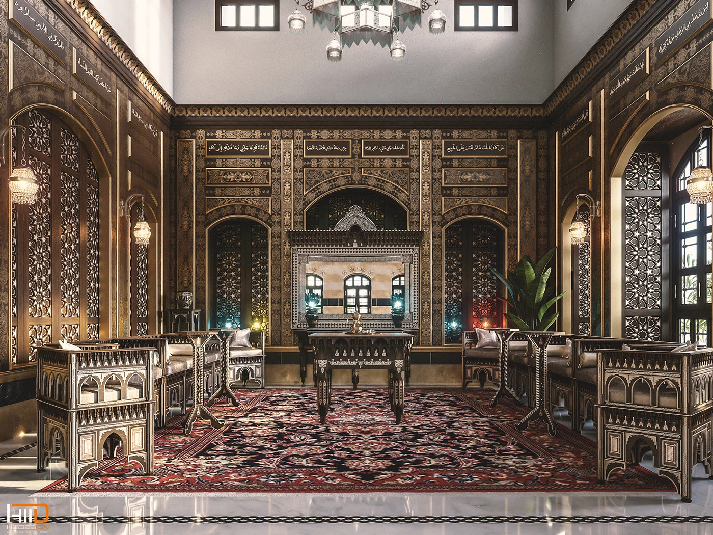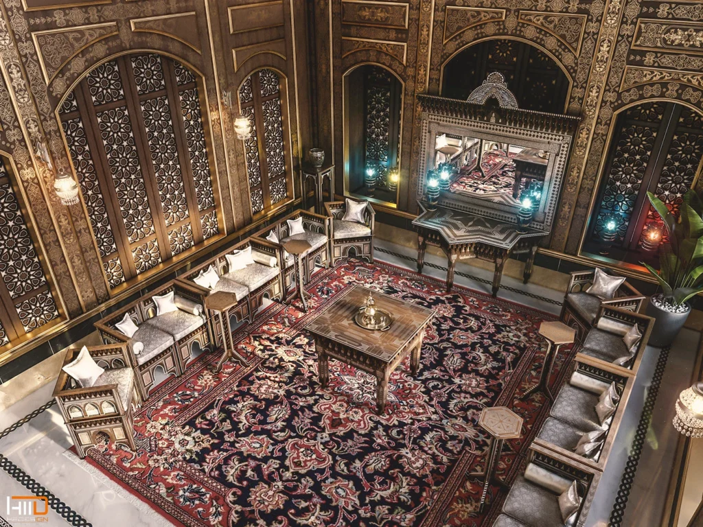 - The Interior: Inside the halls, the luxury is evident in the intricate details. You can find carved and painted wooden panel ceilings, elaborate marble mosaics on the floors and walls, and intricate stone-paste decorations known as ‘Ajami art.